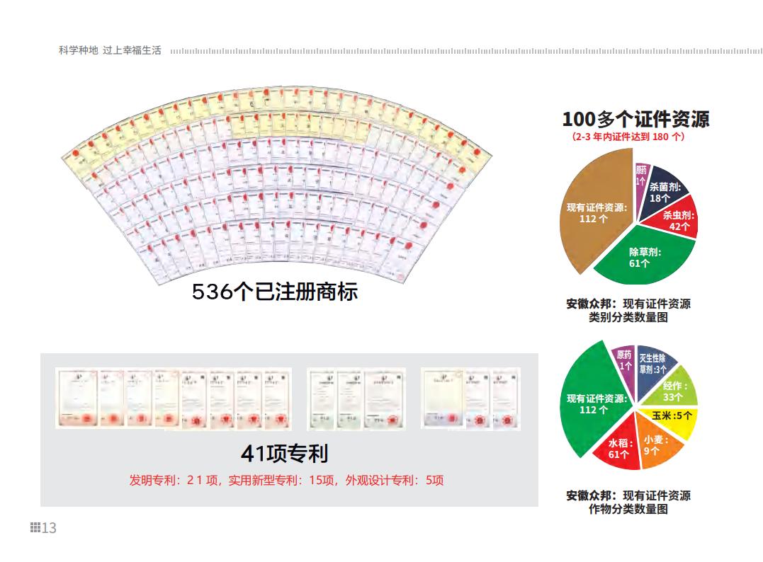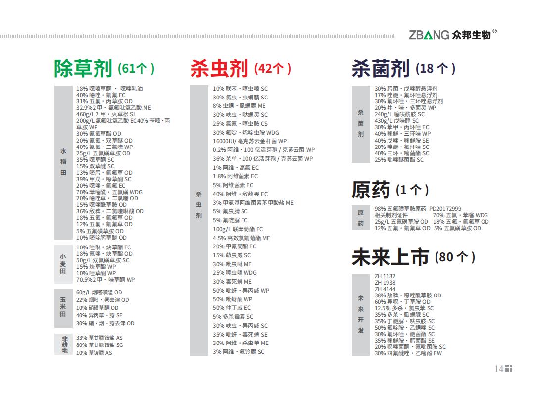 公司證件:除草劑61個,殺蟲劑42個,殺菌劑18個;